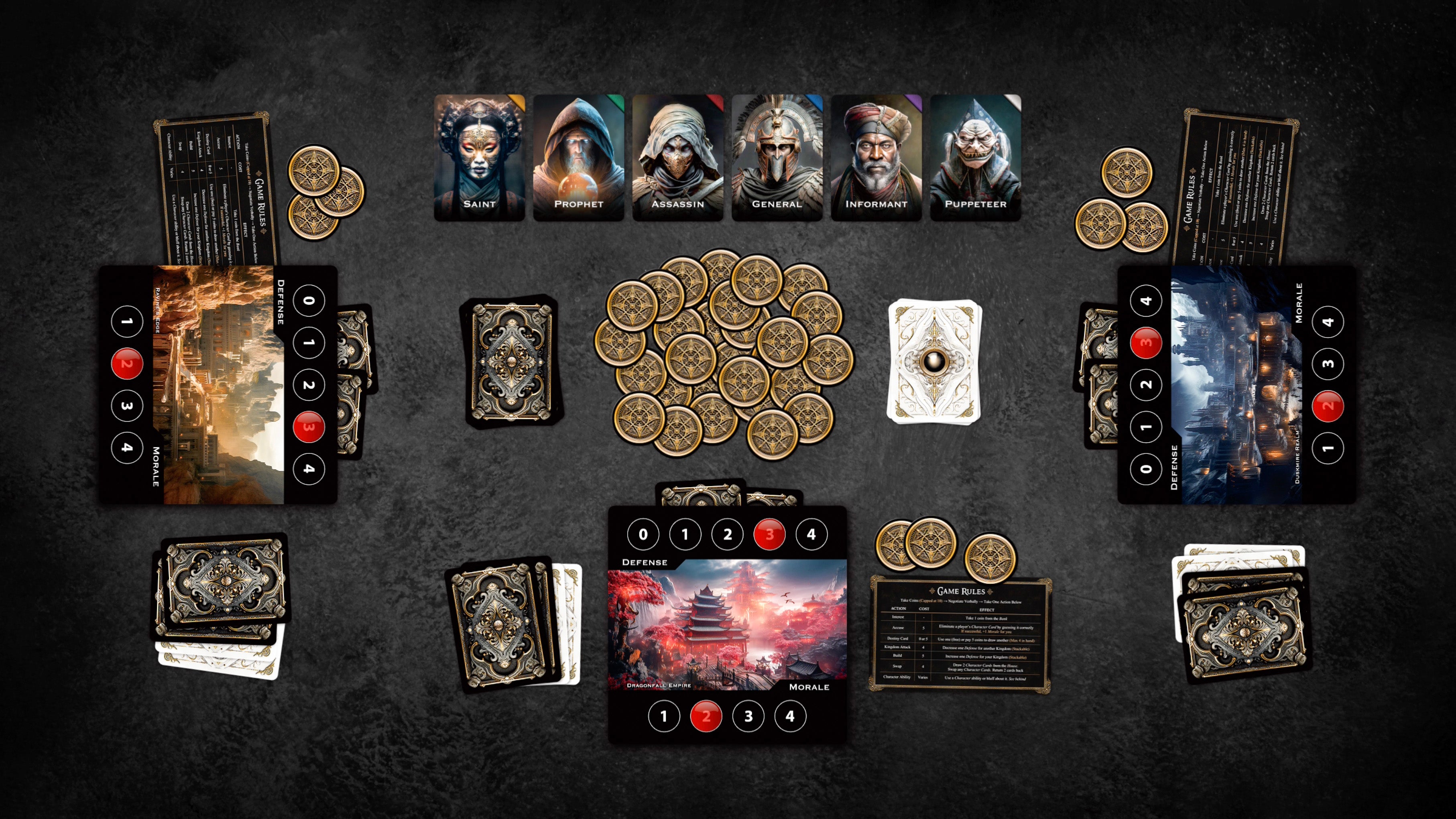 I’ve put together a background music playlist you can play while enjoying The Fall of Kingdoms with your friends and family. I didn’t create the music — it’s a curated compilation from YouTube, chosen to capture the intrigue and atmosphere of the game. I hope it adds a little extra magic to your experience. Enjoy!